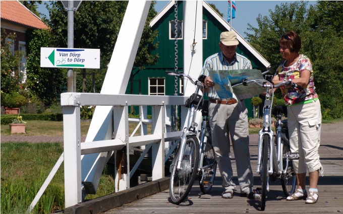 Eine Rundfahrt durch die Gemeinden Großefehn, Hesel, Ihlow und Moormerland, bei der man die ursprünglichsten „Ecken“ Ostfrieslands, die malerische Fehnlandschaft entdecken kann – das ist die gut ausgeschilderte Tour „van Dörp to Dörp“. Ob man nun die gesamte Strecke innerhalb mehrerer Tage radelt und unterwegs Station in gemütlichen Pensionen, modernen Hotels, klassifizierten Ferienwohnungen, urigen Heuhotels oder Mühlenherbergen macht oder ob man nur Teilstrecken der Route erkundet – abwechslungsreich ist die Fahrt allemal. Sie führt vorbei an Mühlen, Gulfhöfen und Kanälen, über Klappbrücken — durch Wiesen, Wallhecken und Waldlandschaften. Geschichtsträchtige Gebäude am Wegesrand und gemütliche Gastwirtschaften laden unterwegs zur Rast ein.